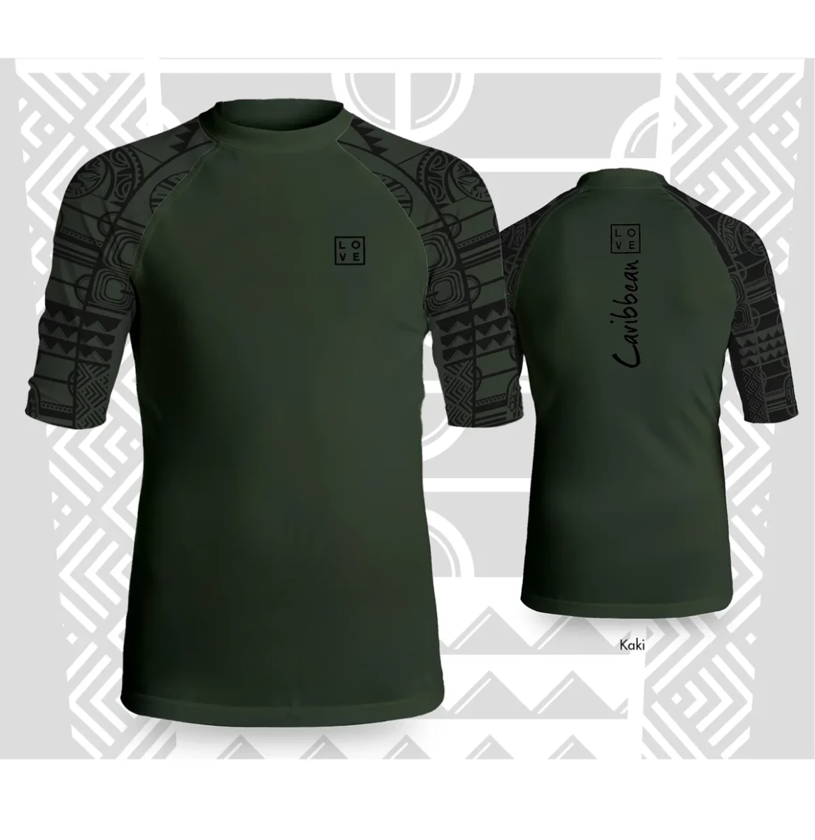 Discover the LOVE Caribbean unisex short-sleeve lycra, designed to support your active lifestyle and moments of relaxation by the sea.